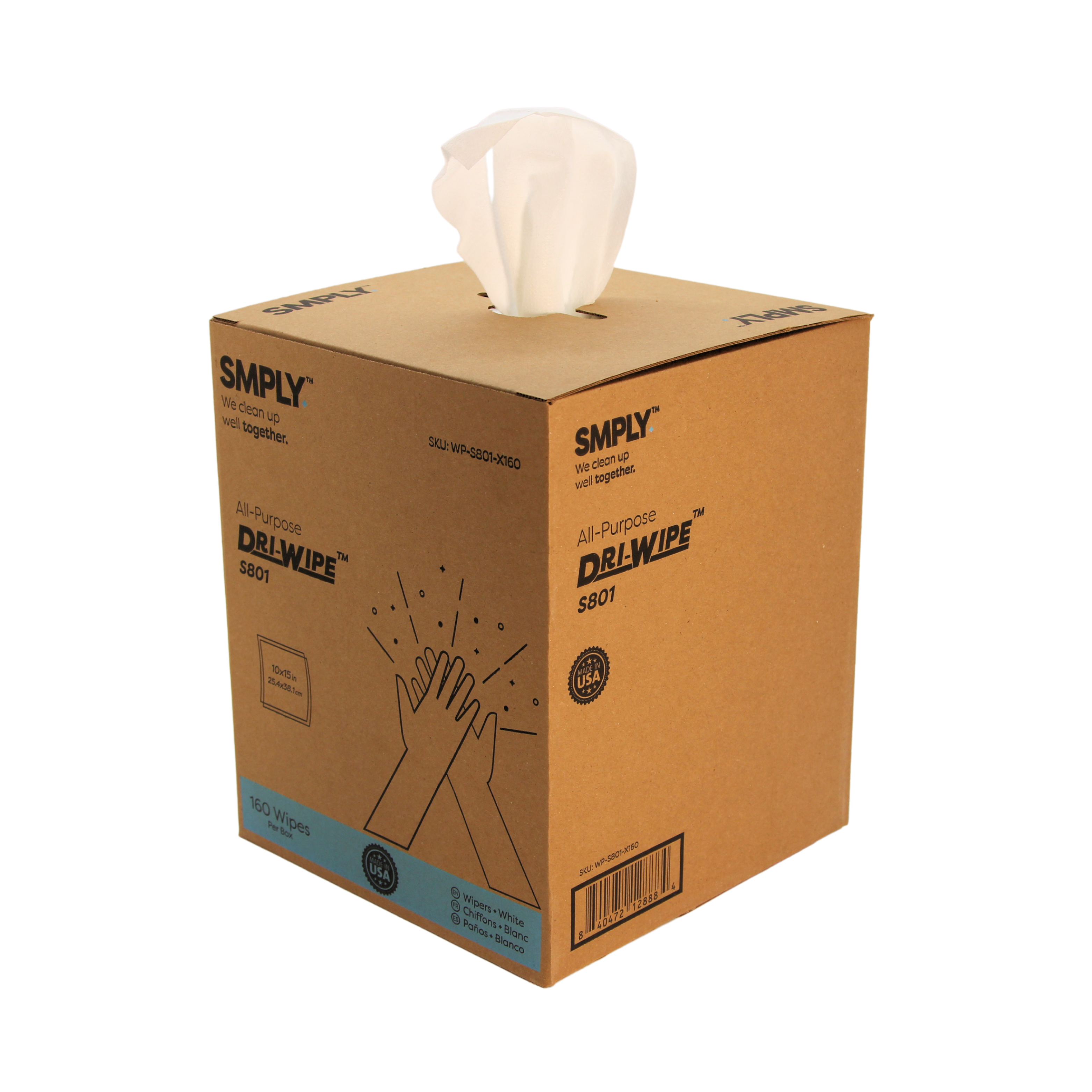 SMPLY Dri-Wipe features versatile, high-performance wipes for industrial, foodservice, and general use, designed for tough cleaning tasks and everyday convenience.