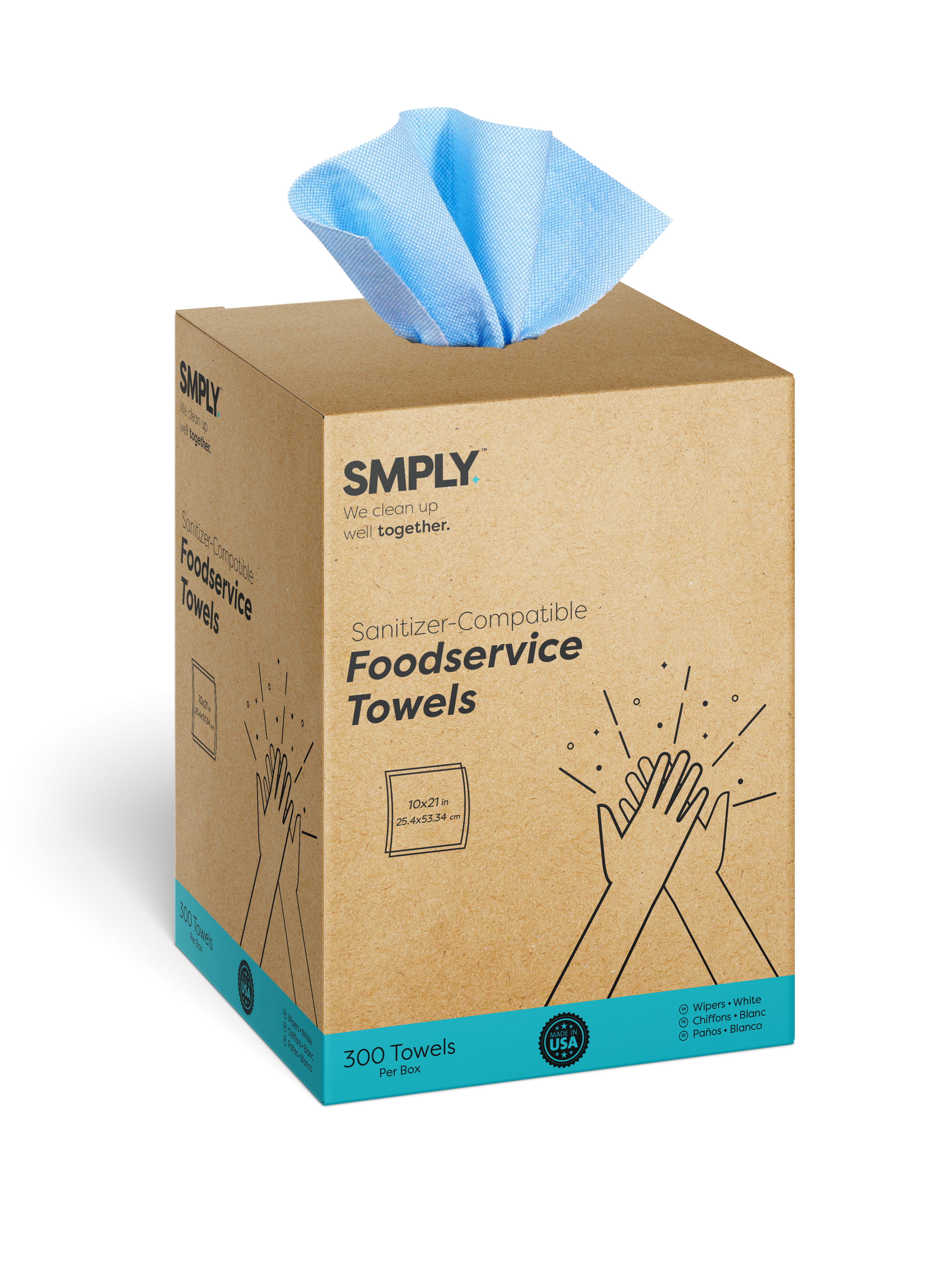 SMPLY PRO offers industrial-strength solutions including paper towels, toilet tissue, disinfectant wipes, and foodservice wipes for demanding environments.