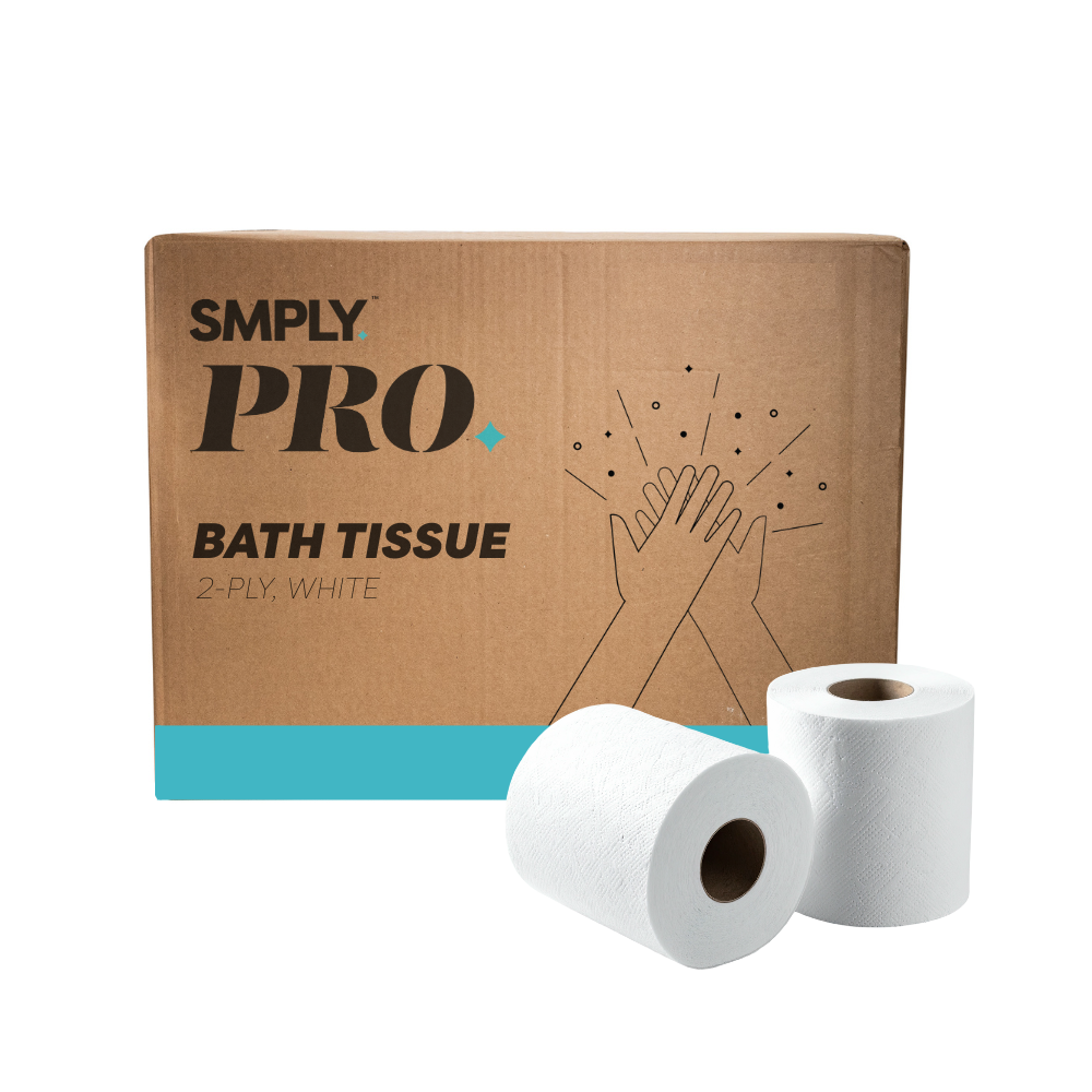 SMPLY PRO Bath Tissue is a high-capacity toilet paper solution designed for commercial restrooms that require long-lasting performance and consistent quality. Our bath tissue contains economical value with a better value supply per case compared to most national brands—helping reduce the frequency of changeouts and restocking labor.