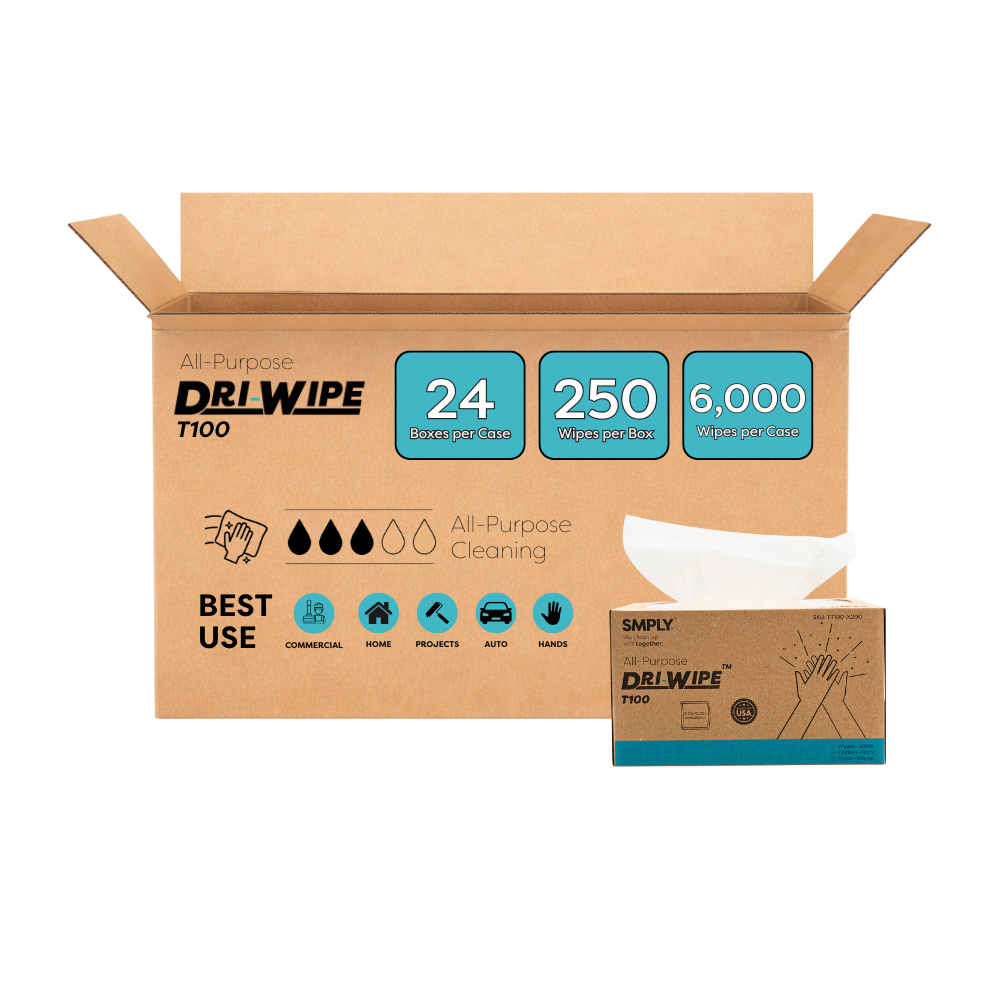 Dri-Wipe T100 by SMPLY Brands is a high-performance all-purpose disposable wipe designed to replace traditional paper towels and microfiber cleaning cloths. From light spills and food prep to general wipe-downs and janitorial use, the T100 performs with strength and softness.