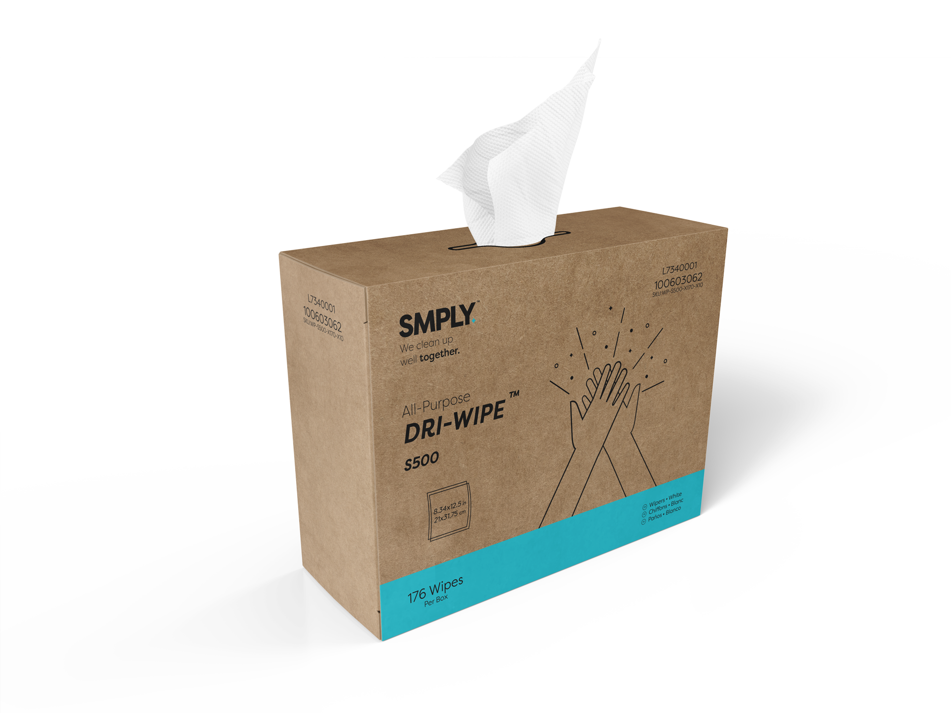 SMPLY Dri-Wipes are a versatile and efficient choice for a wide range of wiping tasks. These tough, cloth wipes are incredibly absorbent and don't fall apart when saturated with liquid. Each compact box contains 176 high-quality wipes, making them a space-saving alternative to rags or towels. Each Dri-Wipe is durable enough to be reused, yet the convenient pop-up box will always have another clean wipe waiting to be used.