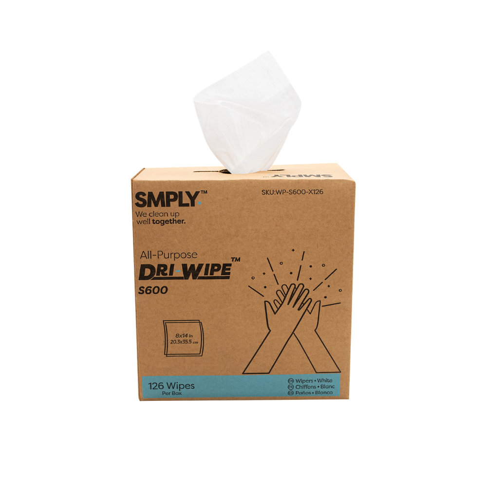 Dri-Wipe S600 by SMPLY Brands – All-Purpose Disposable Wipes, 126 Count, Strong Alternative to Shop Towels & Paper Towels, 8" x 14" Center-Pull Sheets