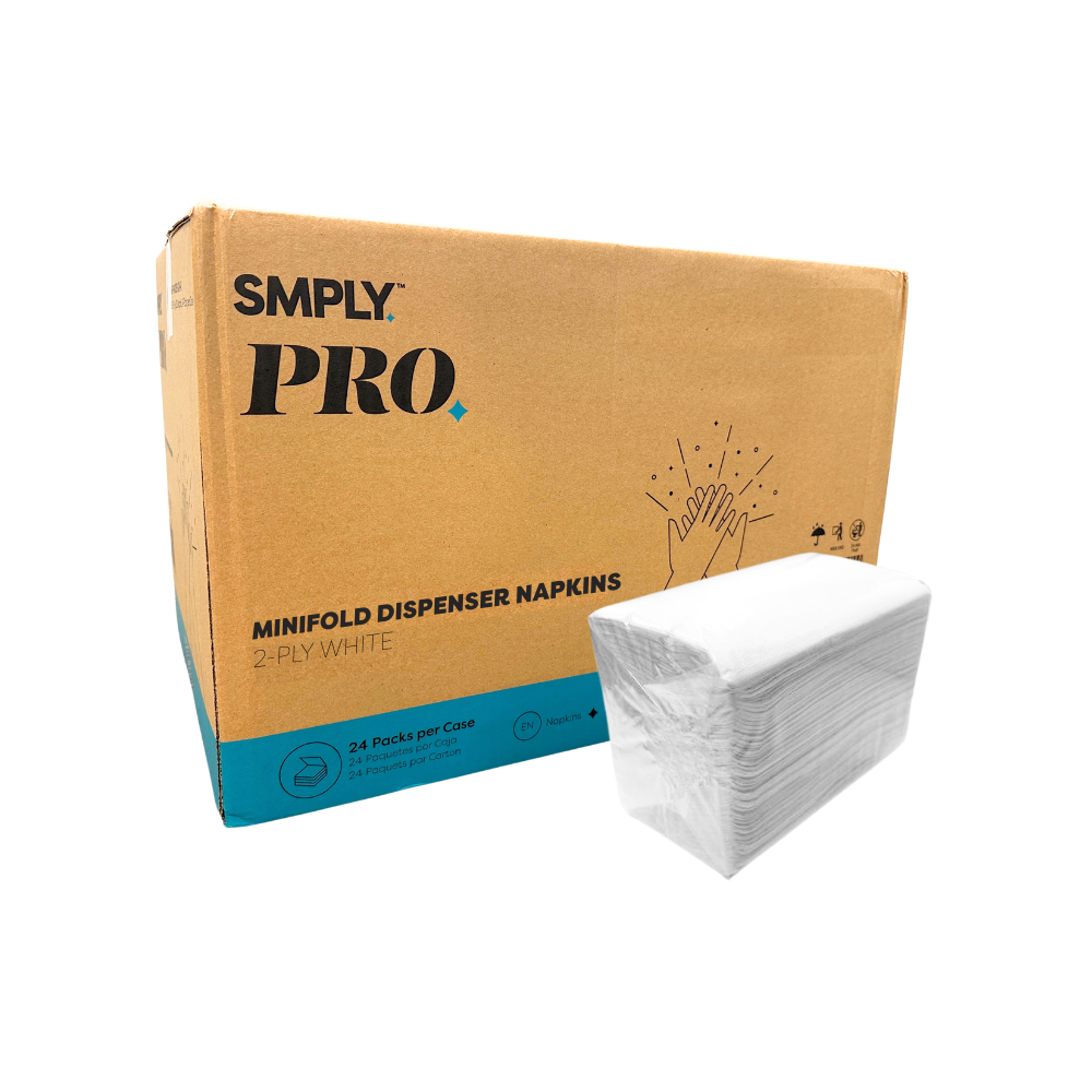 SMPLY PRO Minifold Napkins offer higher napkin counts per case and more efficient dispensing than leading national brands—giving you more value without compromising quality. These napkins are soft, durable, and absorbent with an embossed texture that delivers a premium feel for guests in fast-paced foodservice environments.