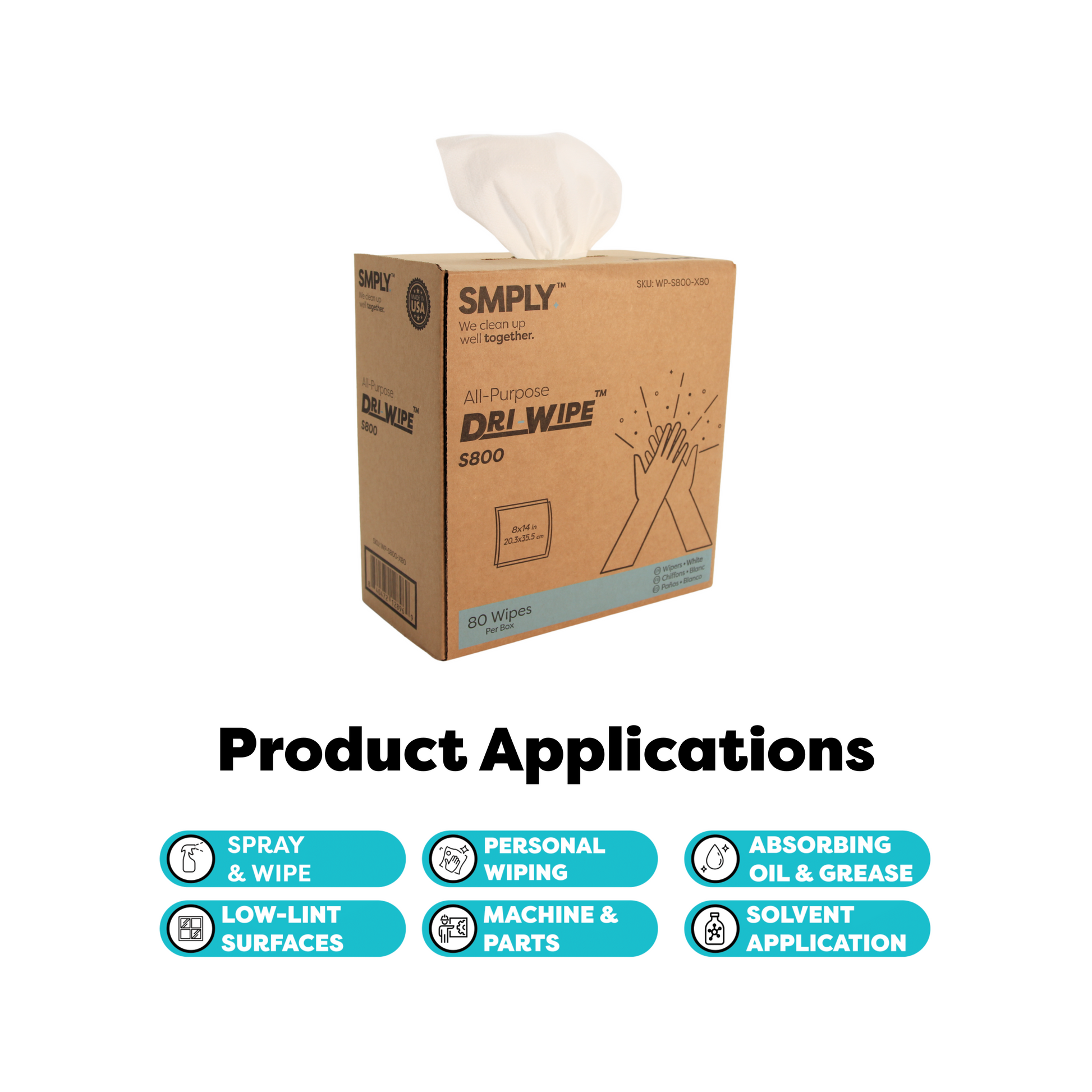 Dri-Wipe S800 by SMPLY Brands – 80 Count Heavy-Duty Wipes, 8" x 14" – Strong Alternative to Paper Towels, Shop Towels, Rags, Microfiber Cleaning Cloths, and Magic Cleaning Cloths